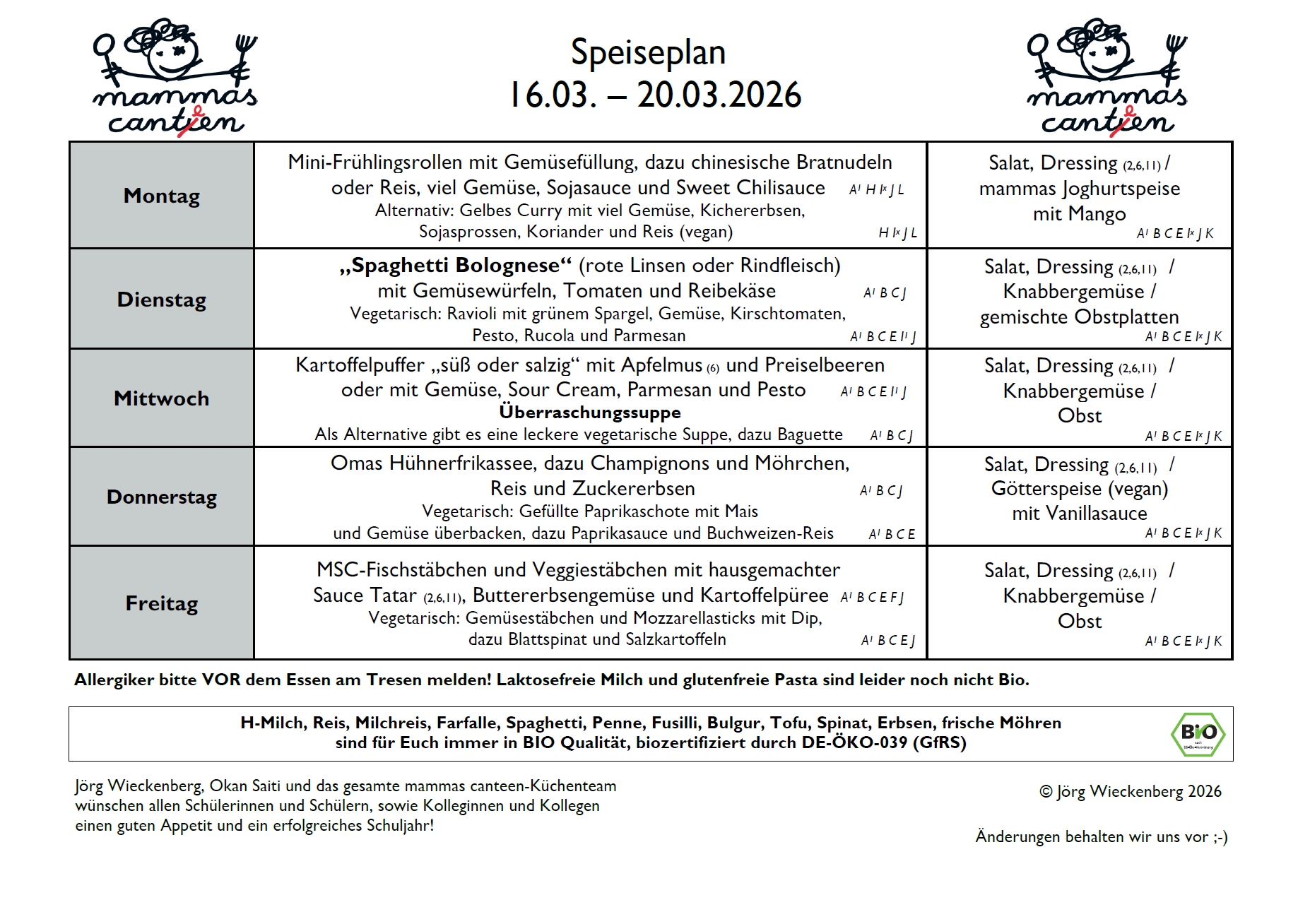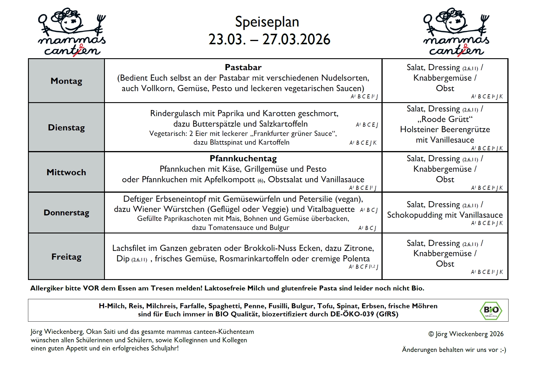 Speiseplan vom 23. – 27.März 2026