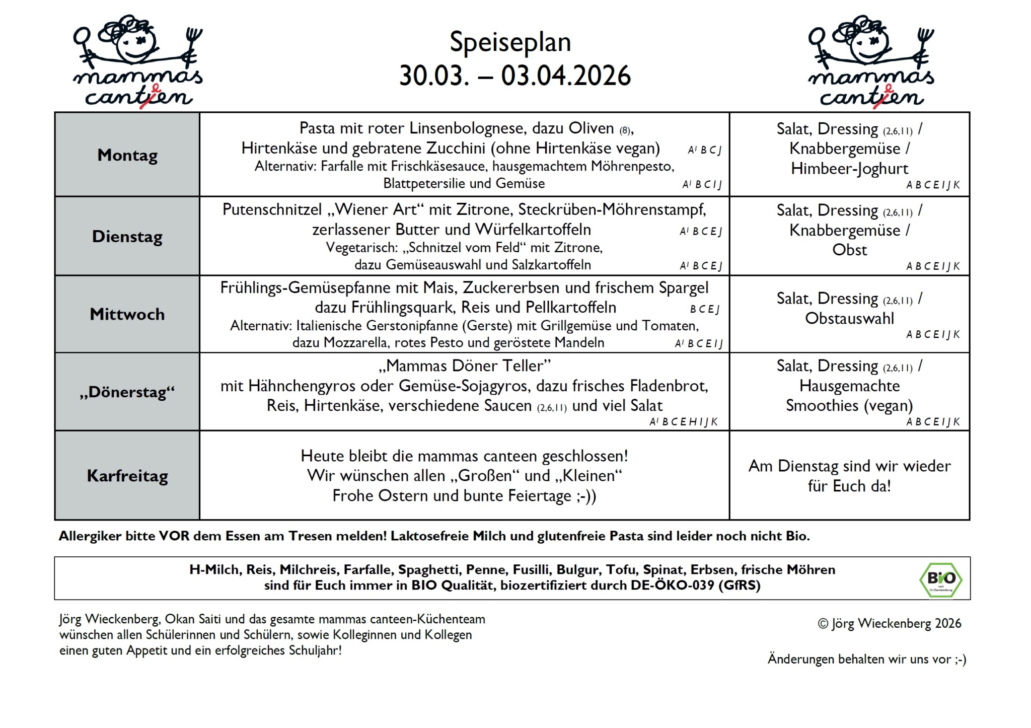 Speiseplan vom 30. März – 3. April 2026