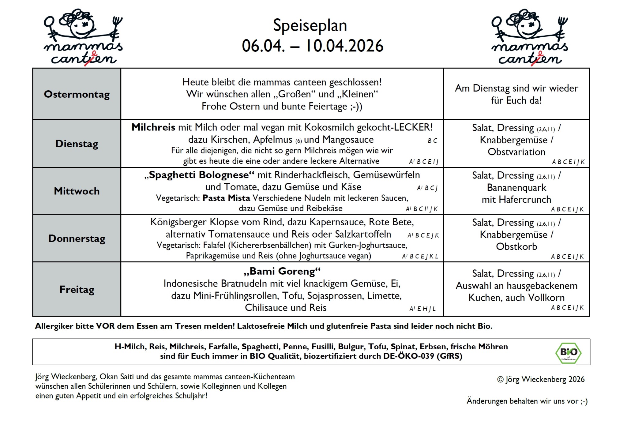 Speiseplan vom 6. – 10. April 2026